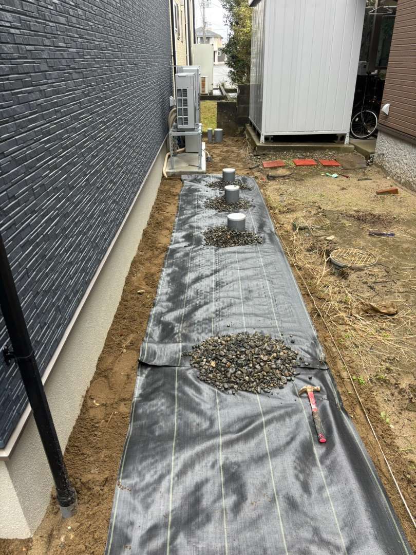新潟市東区 防草シート 砂利入れ